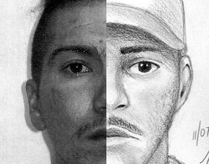 Composite sketches of suspects, drawn from witness statements—those familiar sketches you see on news reports or wanted posters.
