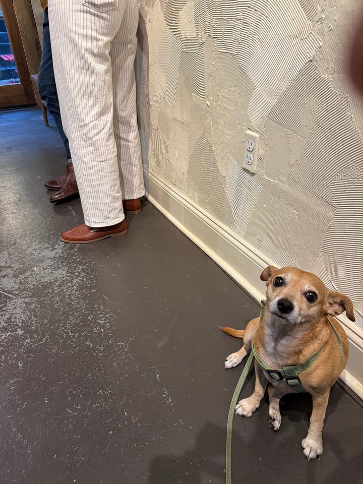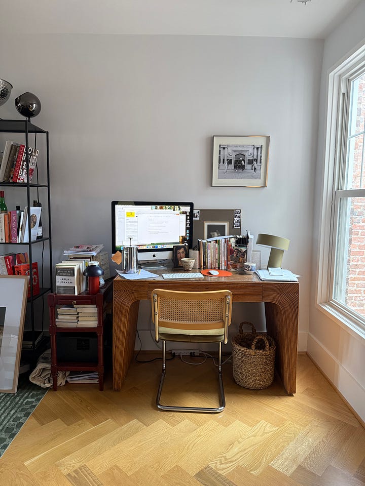 I work from a few locations: My desk at home, the coworking space I belong to, and coffee shops around Richmond. Whenever I can, I bring my dog June so she can practice her social skills. When I record voiceover, I do so sitting on the floor in my closet.
