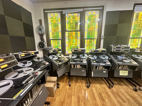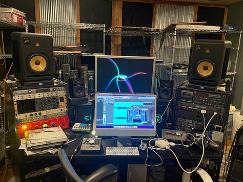 The studio. Lots of fun toys to make music and cut tapes for artists all around the globe.