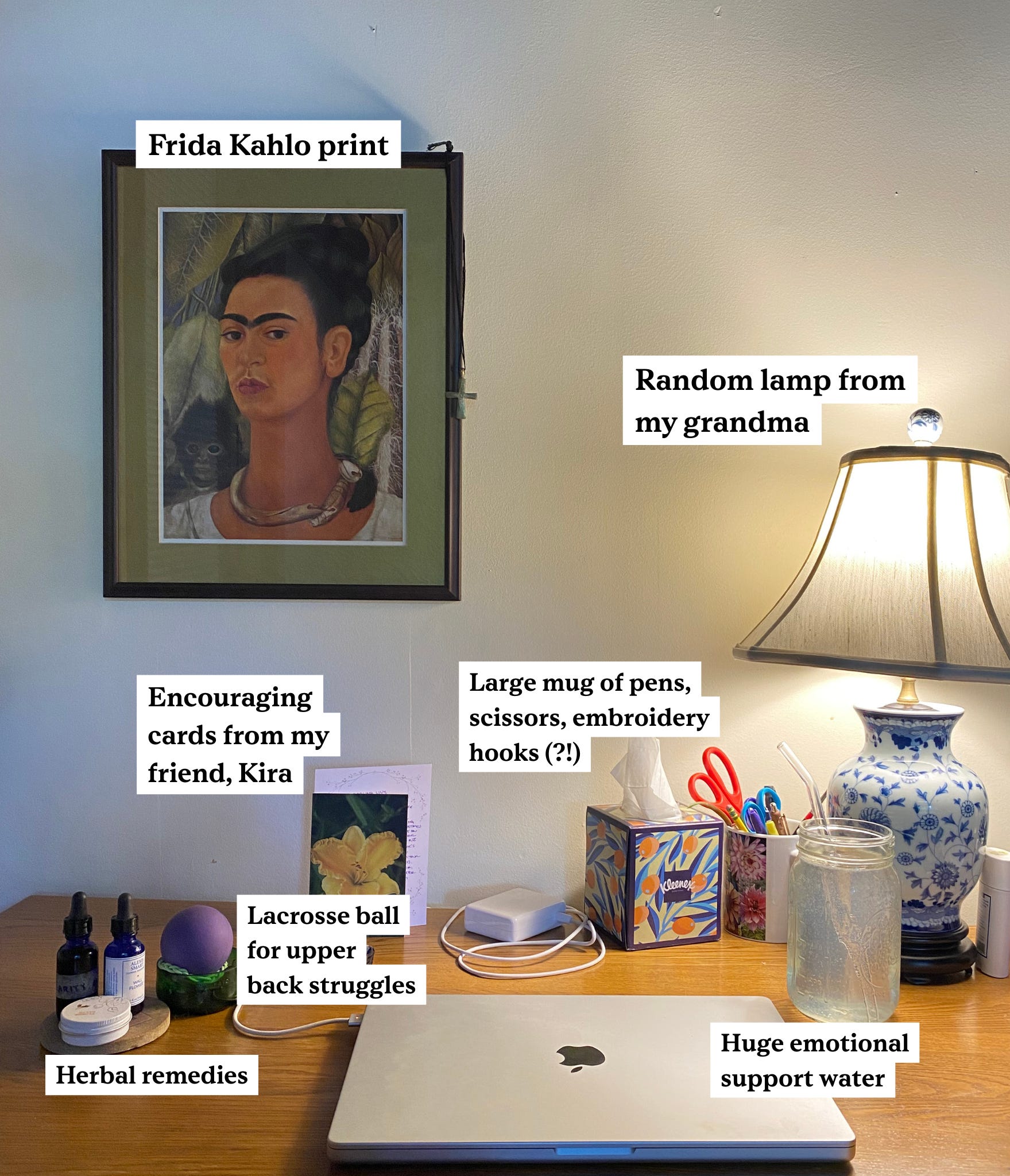 This is Lily’s home desk, annotated!